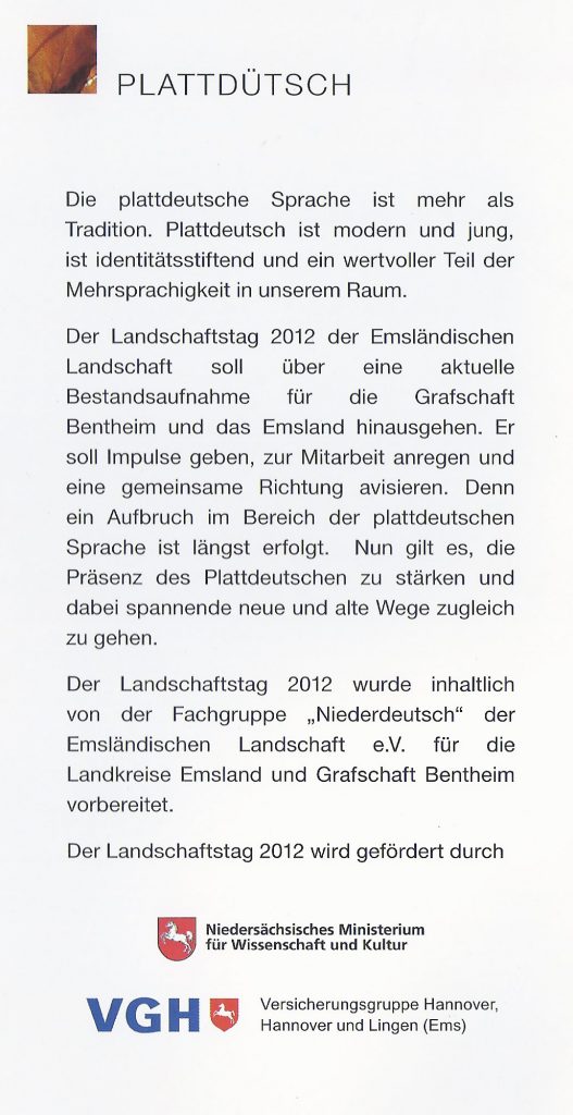 Emsländischer Landschaftstag “Plattdeutsch” 1